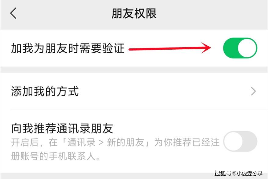 这样设置还没完,这样只是不让别人搜到你,添加你,你看像不要我们经过任何验证就能成功添加,这个也是因为我们一个开关没有打开导致的,那这个开关在哪里呢?咱们返回到上一页,然后把加我为好友时,需要验证的开关打开,这样任何人在添加我们时,就需要经过我们的验证可以了,主动权就在我们手里了,对于不认识的人,咱们不通过,他们就没办法了!