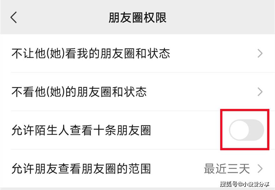 咱们同样打开微信设置->朋友权限->朋友圈,在这里,把【允许陌生人查看十条朋友圈】开关关掉就可以了!