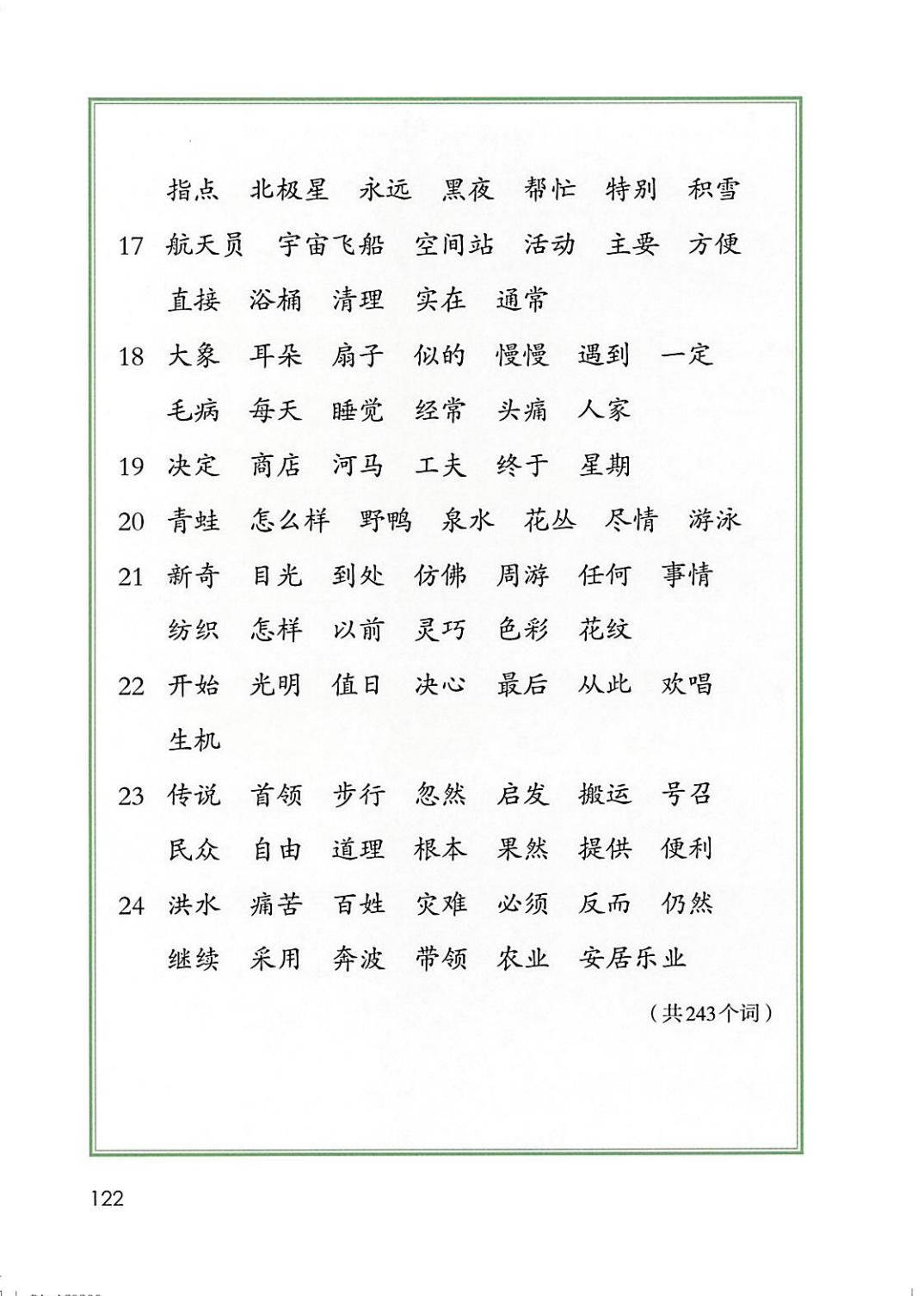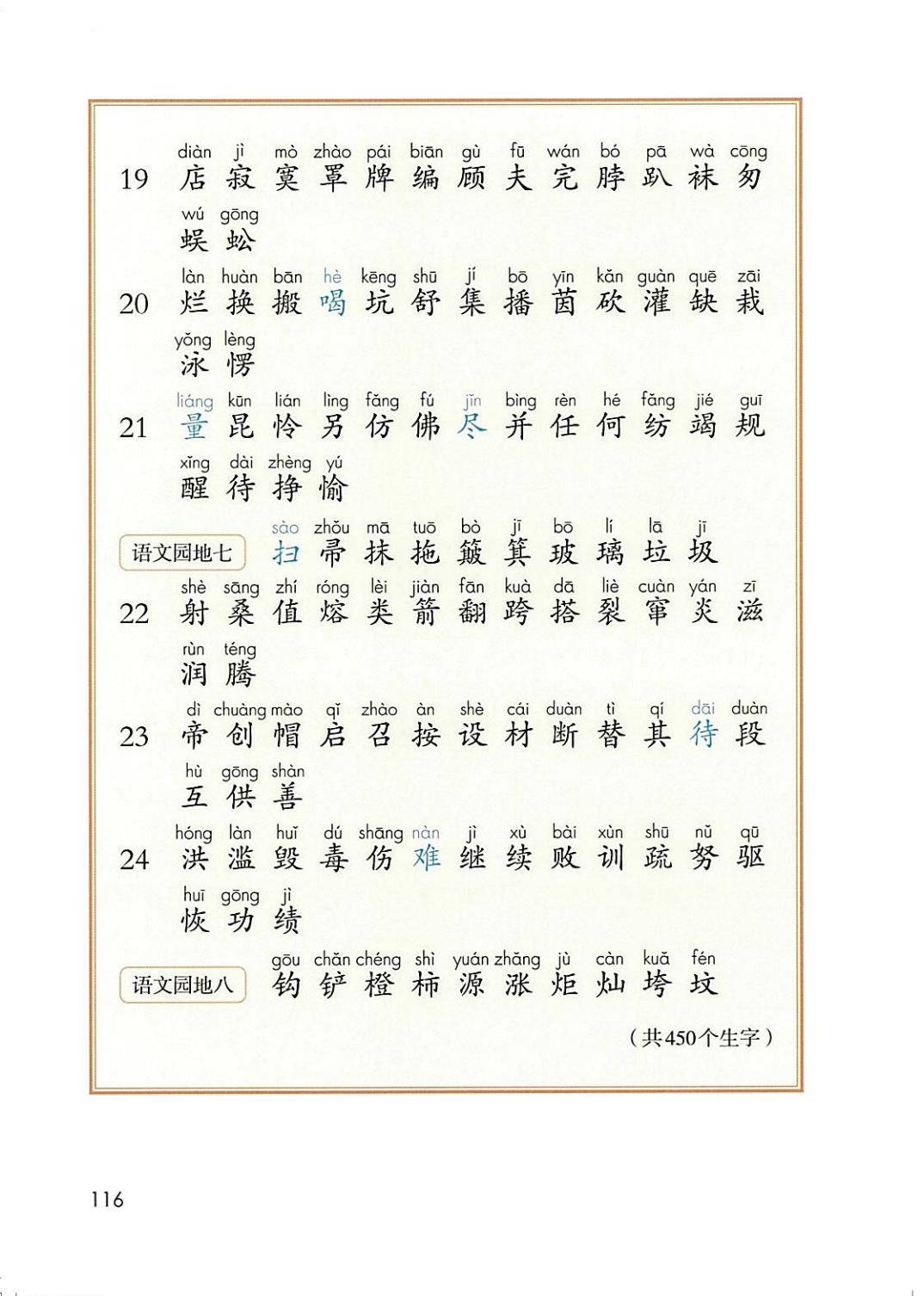 要求认识450字、会写250字,较旧版共增100字,生字表批量更新,需重点练习新增重点字,如《大象的耳朵》里的“扇”“遇”。