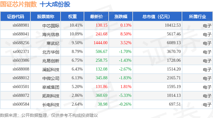 国证芯片(980017)指数十大成份股详情如下: