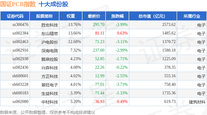 国证PCB(980115)指数十大成份股详情如下: