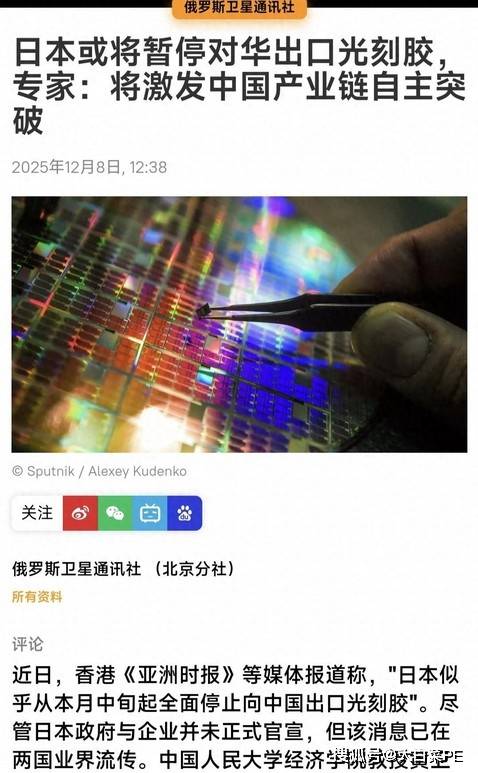 最近,部分日媒提出一个耐人寻味的问题:如果日本彻底断供光刻胶,中国芯片会停摆吗?