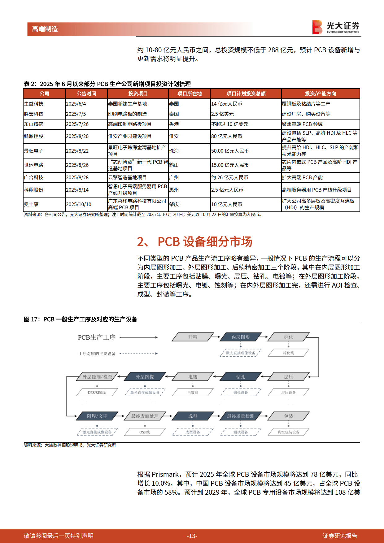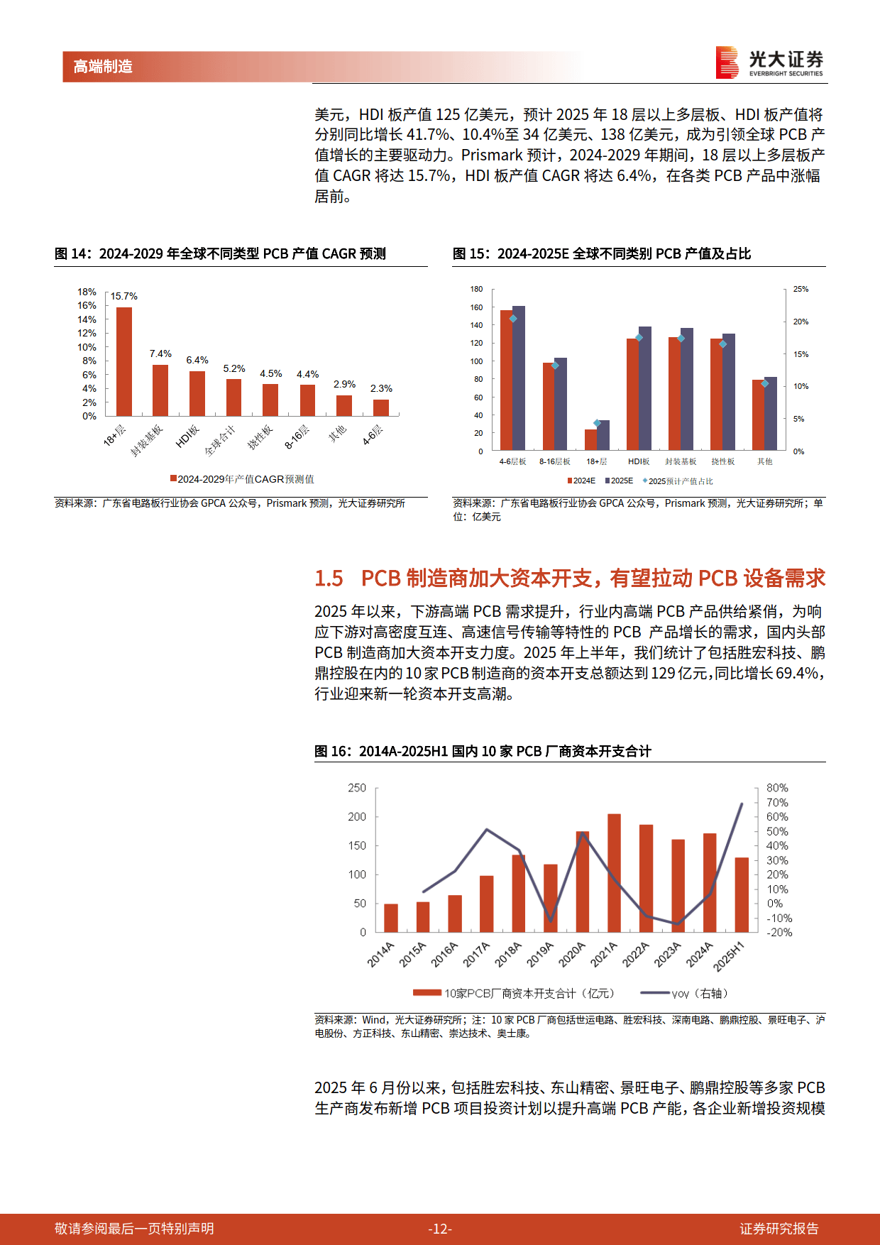 AI 算力需求的强劲增长,带动 AI 服务器需求大幅上升,进而激发高端 PCB 产品需求,国内头部 PCB 生产商加大资本开支,PCB 设备及耗材市场迎来发展浪潮。