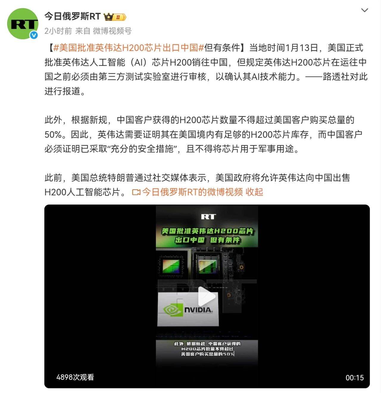 2.H200芯片不能得超过美国客户购买的总量50%,中国客户必须证明已采取充分的“安全措施”,这一方面意味了供货并没有安全,中国企业不是需要就可以购买,且也弄不清这些“安全措施”,对于中国客户意味了什么,会不会损害中国利益。