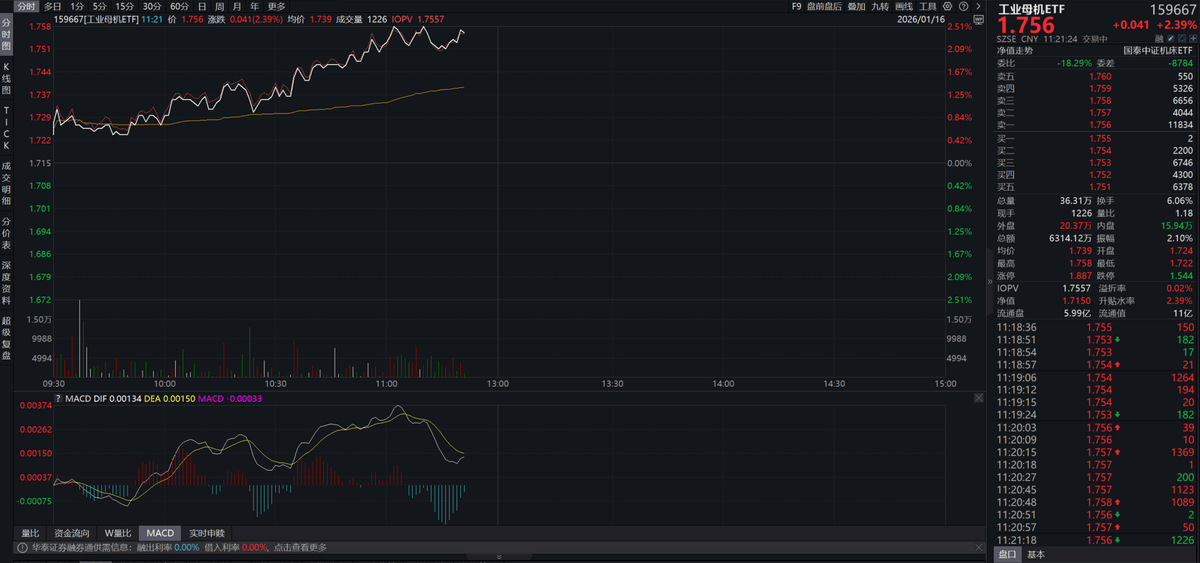 行情看,1月16日,工业母机ETF(159667)大涨超2%,反映出市场对行情催化的乐观预期。
