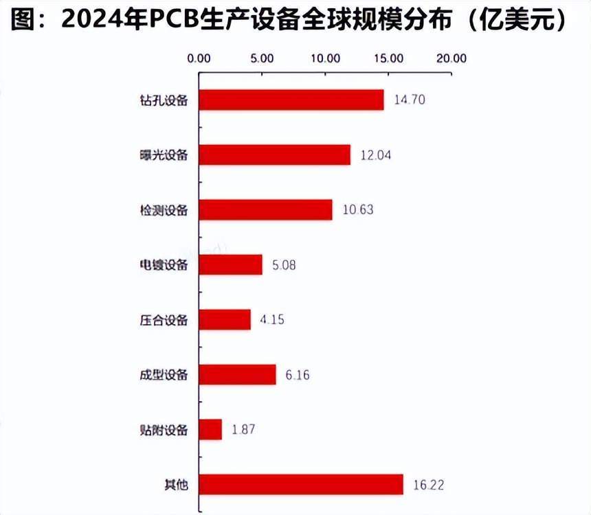 PCB制造流程复杂,涵盖曝光、压合、钻孔、电镀、检测等多道工序,其中钻孔、曝光、检测等设备价值量较高。随着AI带动高端PCB向更高层数、更小孔径、更高精度演进,相关设备及耗材市场空间将进一步打开。