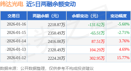 证券之星消息,1月16日,纬达光电(920001)融资买入122.77万元,融资偿还254.39万元,融资净卖出131.62万元,融资余额2218.87万元。