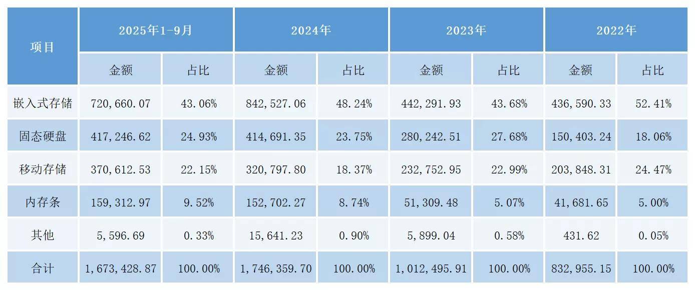截至2025年9月30日,公司已推出应用于UFS、eMMC、SD卡和车规级USB产品的四个系列多款主控芯片,累计部署量突破1亿颗。其中,搭载自研主控芯片的UFS4.1产品已获得多家Tier1大客户的认可,并且部署规模仍在保持快速增长。