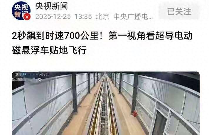 2025年12月25日,国防科技大学对外公布了一项震动业界的成果。 他们的磁悬浮研究团队,在一条400米长的试验线上,完成了一次堪称“暴力”的加速测试。 一个重量达到吨级的试验车,从静止状态启动,仅仅用了2秒钟,速度计的指针就飙升到了每小时700公里。 这个速度,已经超过了民航客机起飞时的速度。 并且,在达到这个惊人高速后,整个系统还能实现安全、可控的停车。 2秒是什么概念? 我们普通的家用小轿车,从0加速到100公里每小时,大概需要8到10秒。 而国防科大的这套系统,只用其五分之一甚至更短的时间,就把一个重得多的物体,加速到了700公里的时速。 这种爆发力,被研究人员形象地称为“短距离爆发出力”能力。