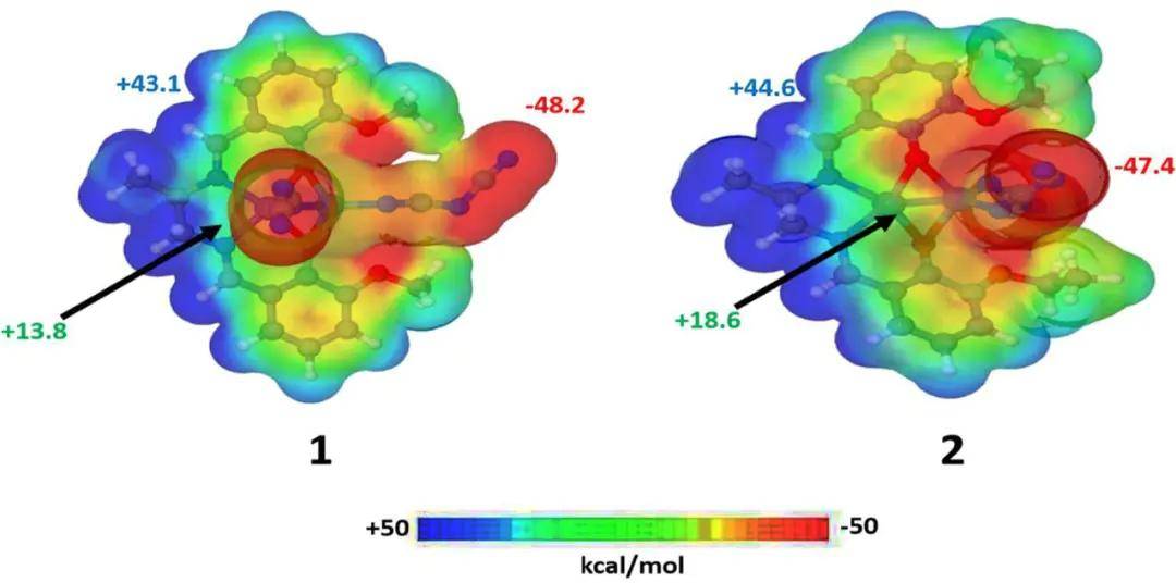 其三,明确的物理意义,φ(r)的数值直接反映空间某点对带正电探针的吸引或排斥趋势——负值区域因电子云密度较高,对正电荷探针表现出较强吸引力,易与阳离子发生相互作用;正值区域则因核电荷暴露或电子云稀疏,对正电荷探针产生排斥,更易吸引阴离子。