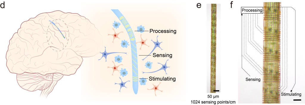 目前商业脑机接口电极普遍需要外接处理设备。基于“纤维芯片”,可制成比头发丝更细的柔性电子系统,将其植入脑部后,既能检测神经信号,又能实时处理,甚至有望实现“感知-处理-刺激”闭环。“未来或许能更精准监测脑内化学和电信号,为帕金森、癫痫等脑部疾病治疗提供新工具。” 论文第一作者王臻表示。