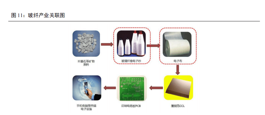 电子级玻纤布由电子级玻璃纤维纱织造而成,是覆铜板核心增强材料。电子级玻璃纤维纱由叶腊石、石英砂等多种矿石为原料经高温熔制、拉丝、后加工等工艺制造成,其单丝的直径为几微米,每束纤维原丝都由数百根甚至上千根单丝组成。玻璃纤维电子布由电子级玻璃纤维纱(E 玻璃纤维/无碱玻璃纤维制成的纱线,一般单丝直径 9 微米以下)织造而成,具有高强度、高耐热、高耐化学性、高耐燃性、电气特性好及尺寸安定性佳等优点,能提供双向或多向增强效果,是生产覆铜板不可缺少的增强材料,可使基板具备优异的电气特性及机械强度等性能。