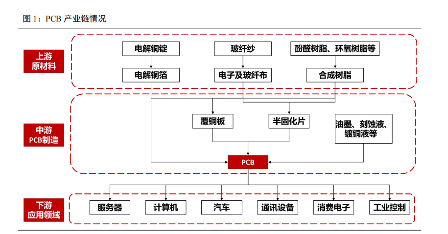 PCB 是电子产品的关键互联件,被誉为“电子产品之母”。PCB 又称印制线路板,是指采用电子印刷术制作的、在通用基材上按预定设计形成点间连接及印制组件的印制板,可应用于服务器/数据存储、计算机、汽车、通信设备等领域,能为各种电子元器件提供机械支撑、实现电子元件之间的电气连接,在整个电子产品中具有不可替代性,被誉为“电子产品之母”。