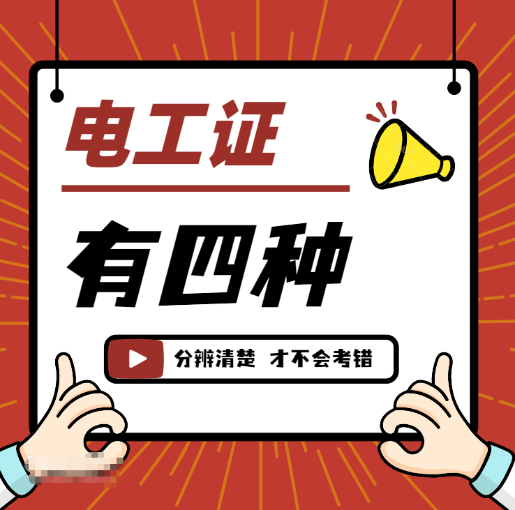 对于从事电工行业人员来说,必须要考证,但是电工证可不止一种呢,一共有四种,你分清楚了吗?对于已经拥有电工证或者想要报考电工证的师傅们来说,必须要先了解清楚在报考!!