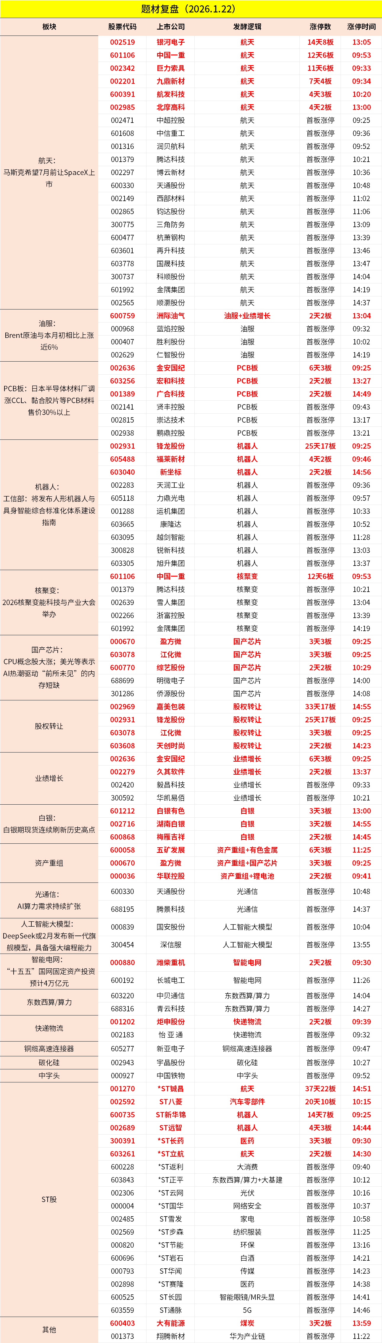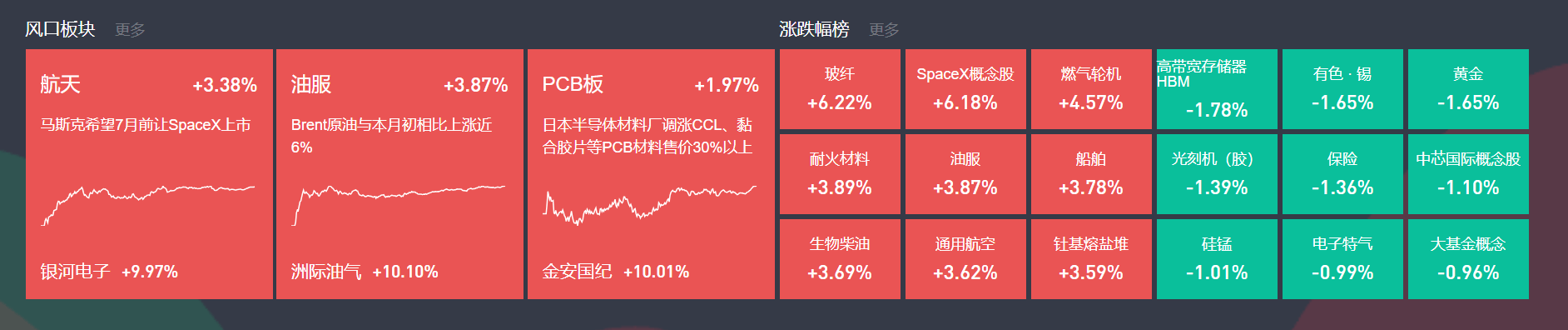 航天板块今日大幅反弹,银河电子、巨力索具、中国一重、航发科技等多股涨停。