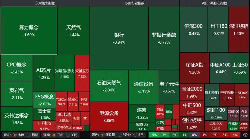 盘面上分化明显,天基互联、BC电池、HIT电池、卫星应用大涨,电源设备、营销服务也表现不错。算力概念、天然气、CPO概念、英伟达概念、F5G概念、光通信模块、航空机场下跌。