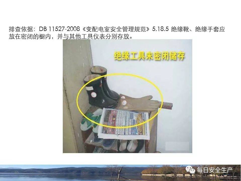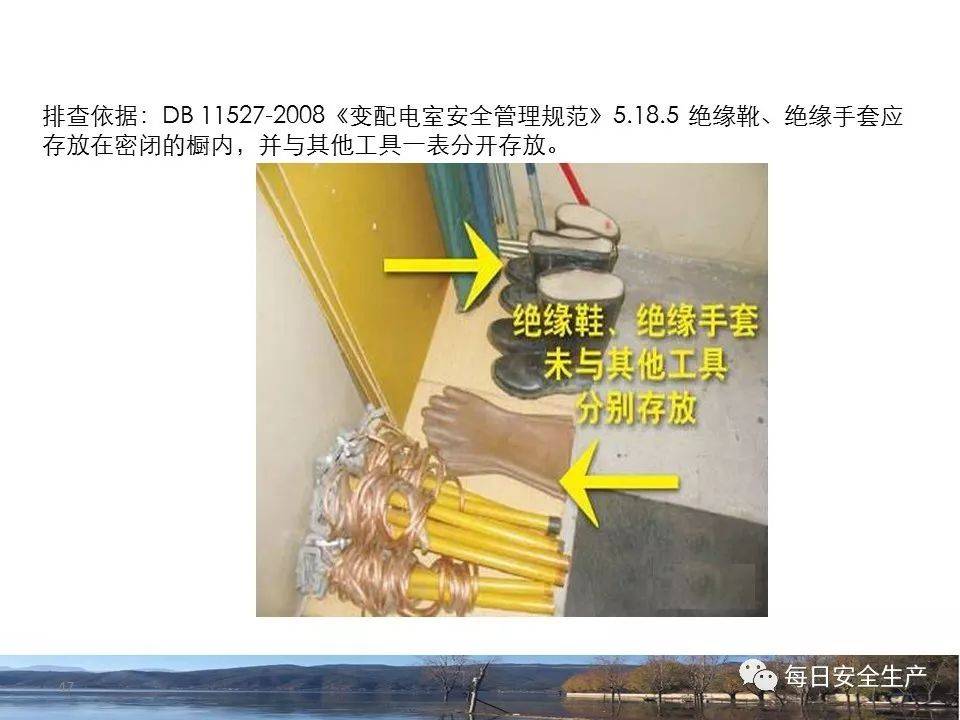 11.检查配电房是否配备了绝缘棒、绝缘手套、绝缘鞋等防护用品,以及是否配备了应急照明灯具和灭火器材、备有“禁止合闸,有人工作”的标识牌。