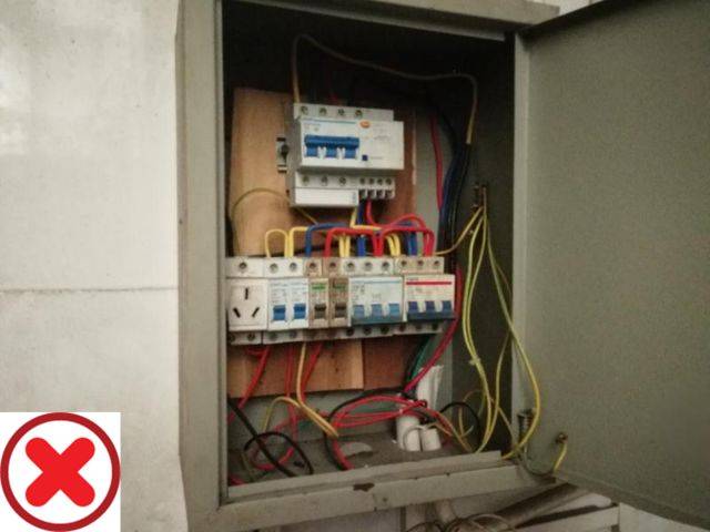 8.检查配电箱内有没有超负载接电的情况,导线截面积相同情况下,同一端子上导线连接不能超过两根。