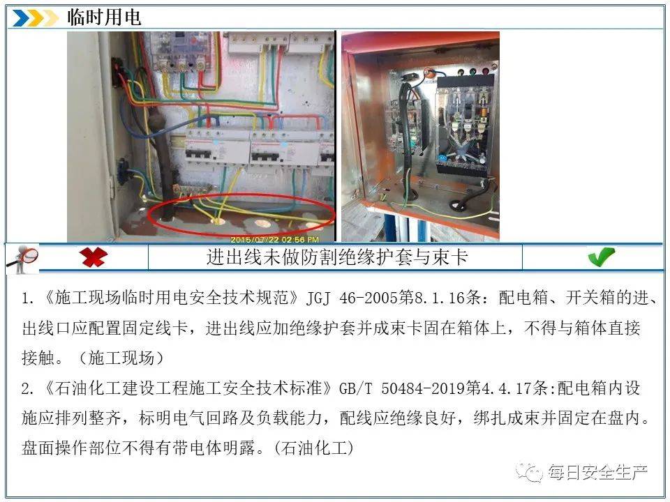 6.检查配电箱引出的进出导线的部位有没有设绝缘垫护或用导管引入50mm~80mm,防止电线绝缘层破损。