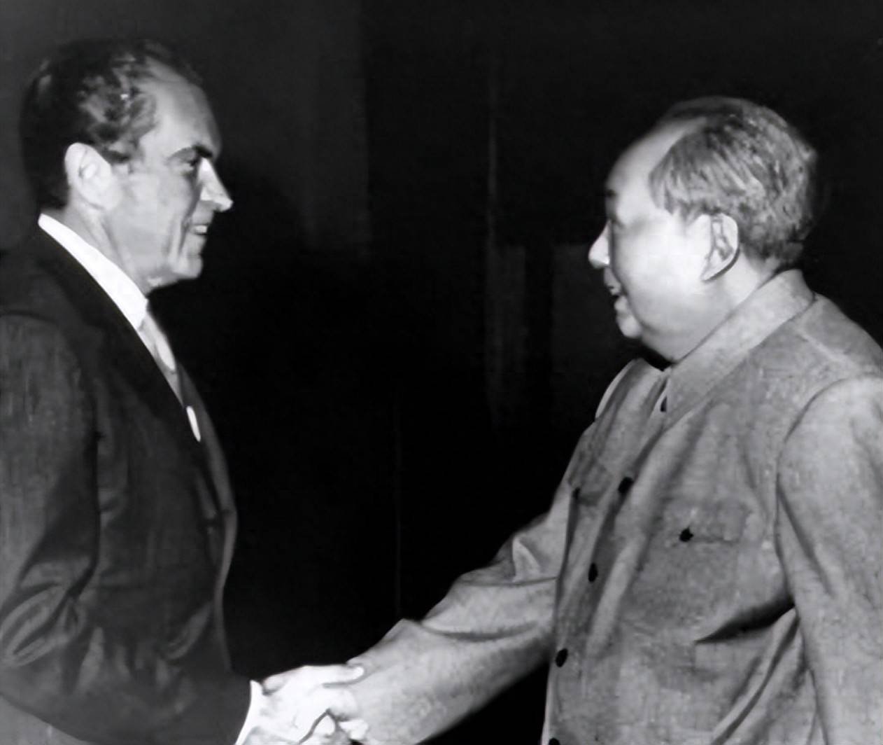 1972年2月21日,在飞机上,尼克松紧张地做着准备。他反复练习着握手的动作,嘴里还念叨着:“可不能失礼,一定要让这次握手完美。”