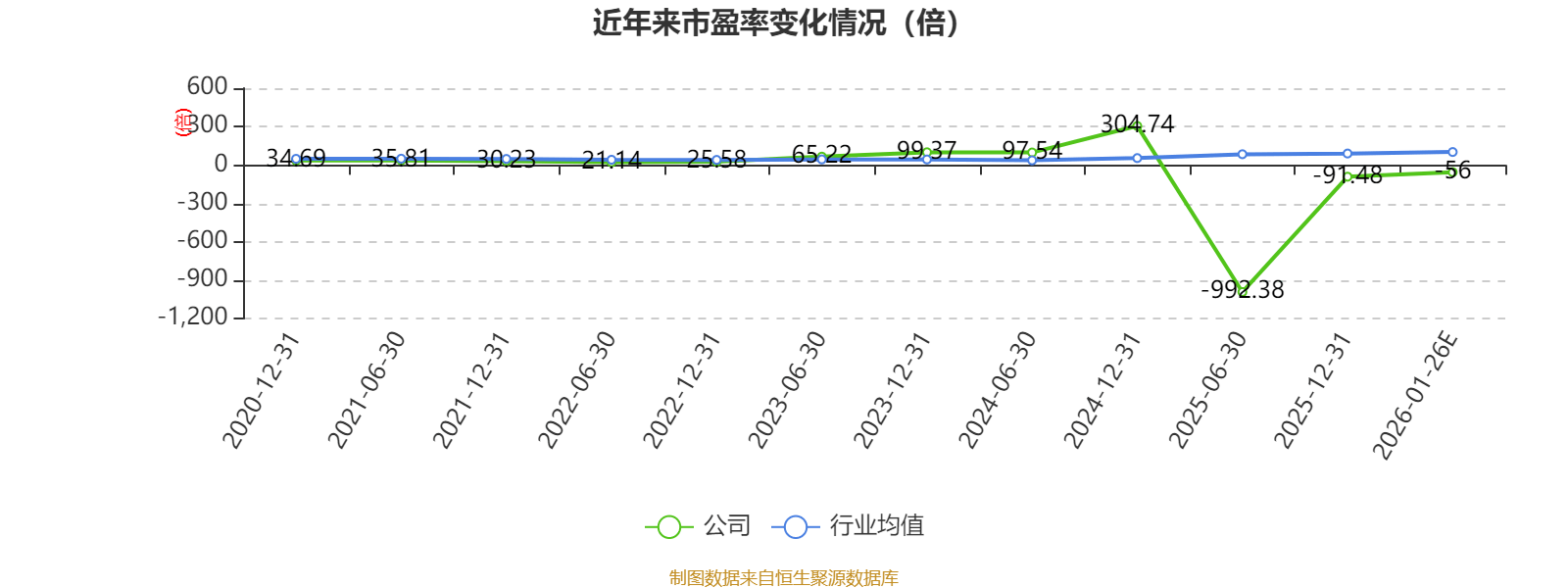 市盈率、市净率为负时,不显示当期分位数,会导致折线图中断。