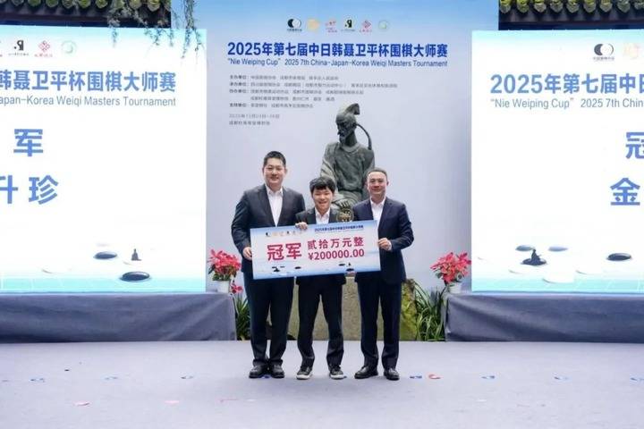 26日,为期两天的2025年第七届中日韩聂卫平杯围棋大师赛在成都杜甫草堂落幕,韩国棋手金升珍七段在决赛中执黑3/4子战胜中国的胡耀宇八段。