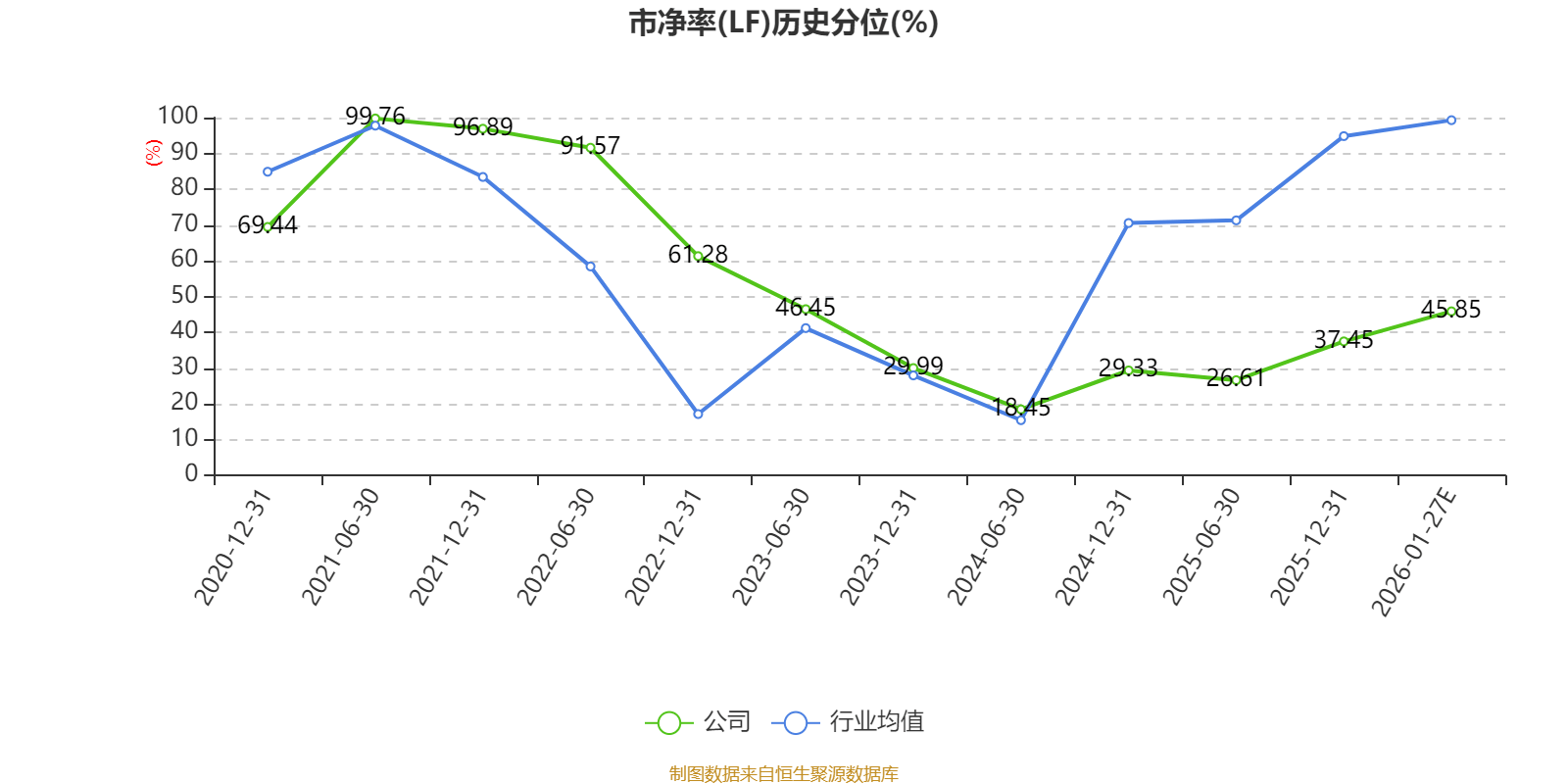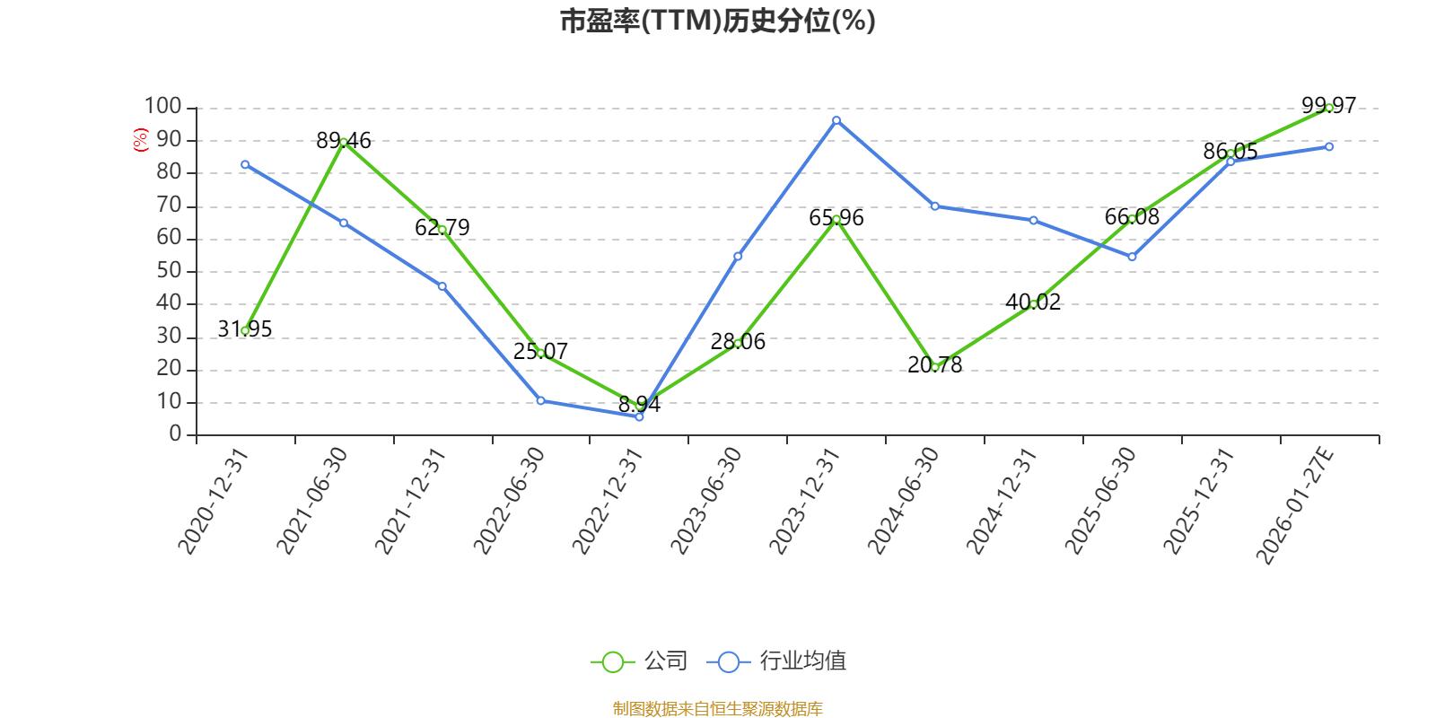 市盈率、市净率为负时,不显示当期分位数,会导致折线图中断。