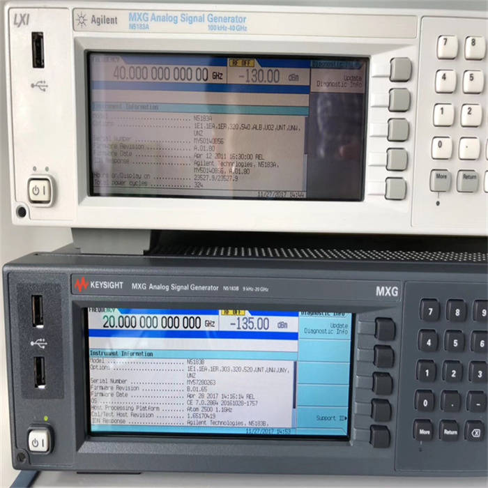 N5183B 频率范围:9 kHz 至 20 GHz,具有 AM、FM、相位调制功能。N5183B MXG X 系列微波模拟信号发生器拥有 9 kHz 至 40 GHz 的频率覆盖范围,以及接近 PSG 级别的相位噪声性能,同时在体积和速度方面具有极大优势。