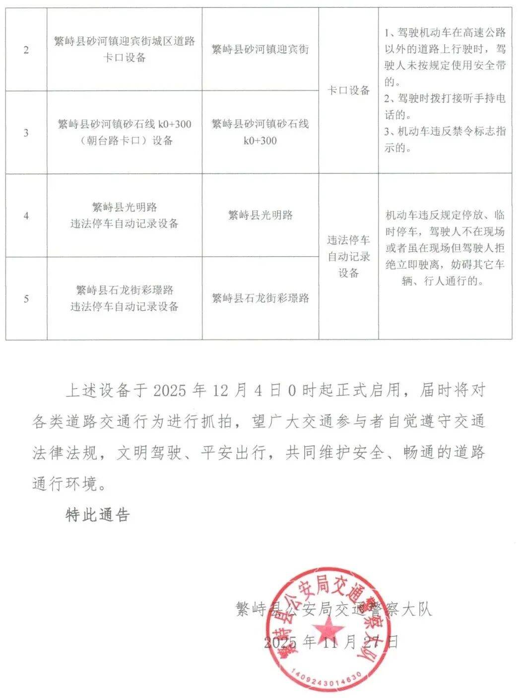 繁峙县:关于启用城区电子技术监控设备的通告