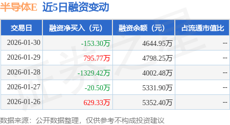 证券之星消息,1月30日,半导体E(159558)融资买入1361.64万元,融资偿还1514.95万元,融资净卖出153.3万元,融资余额4644.95万元,近20个交易日中有12个交易日出现融资净买入。