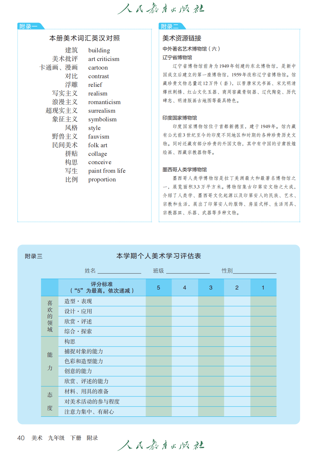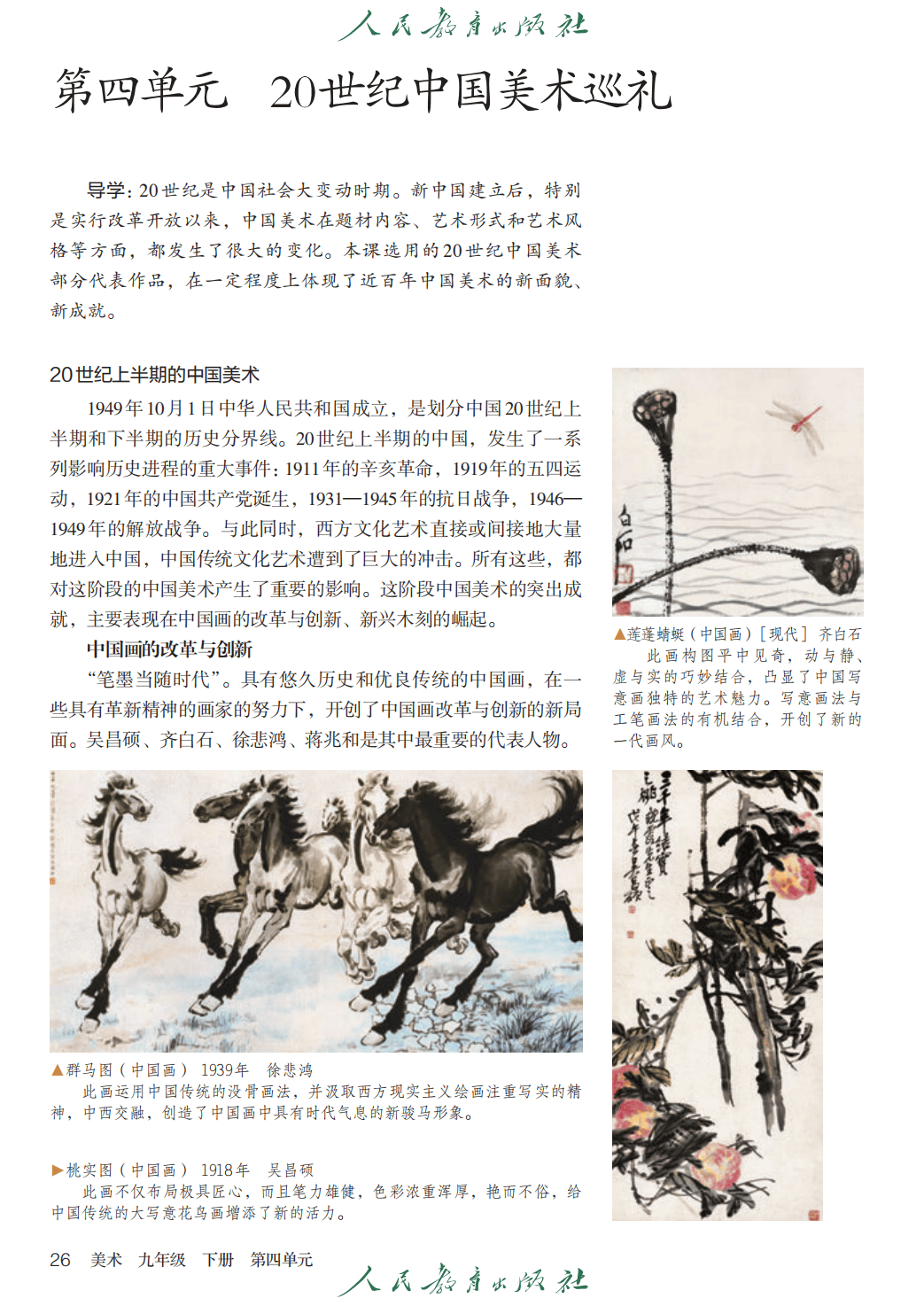 2026人教版九年级美术下册电子课本(新教材)就为您介绍到这里,资源来源于网络,仅为学习交流之目的进行分享,其版权均归原出版社及作者所有。