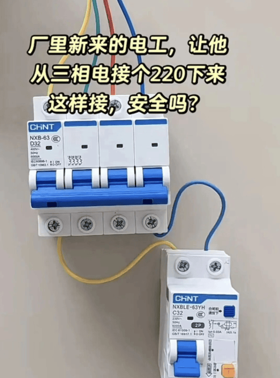 新来的电工,让他从三相电接个220V的电,他是这样接的,对吗?