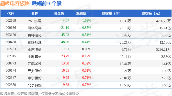 证券之星消息,2月9日超级电容板块较上一交易日上涨4.56%,杉杉股份领涨。当日上证指数报收于4123.09,上涨1.41%。深证成指报收于14208.44,上涨2.17%。超级电容板块个股涨跌见下表: