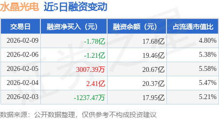 证券之星消息,2月9日,水晶光电(002273)融资买入1.26亿元,融资偿还3.04亿元,融资净卖出1.78亿元,融资余额17.68亿元。