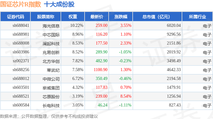 国证芯片R(480017)指数十大成份股详情如下: