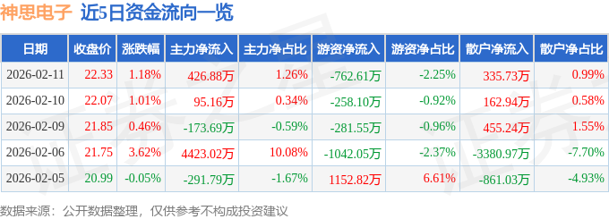2月11日的资金流向数据方面,主力资金净流入426.88万元,占总成交额1.26%,游资资金净流出762.61万元,占总成交额2.25%,散户资金净流入335.73万元,占总成交额0.99%。
