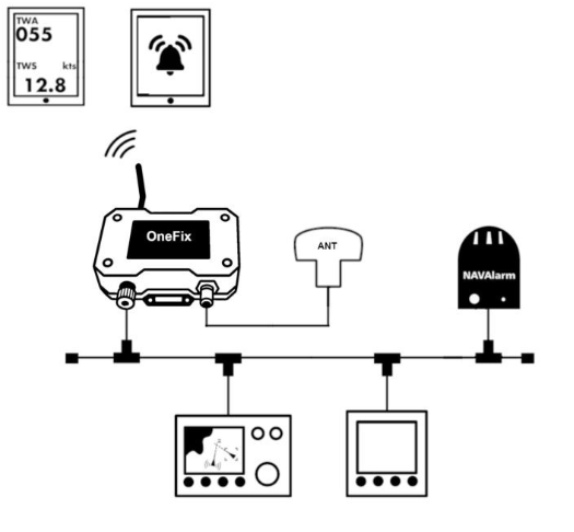 由于其受密码保护的Wi-Fi接口,OneFix可为Navionics、TimeZero、AquaMaps、Navimetrix等数百种海图应用程序提供无线NMEA 2000数据输出。