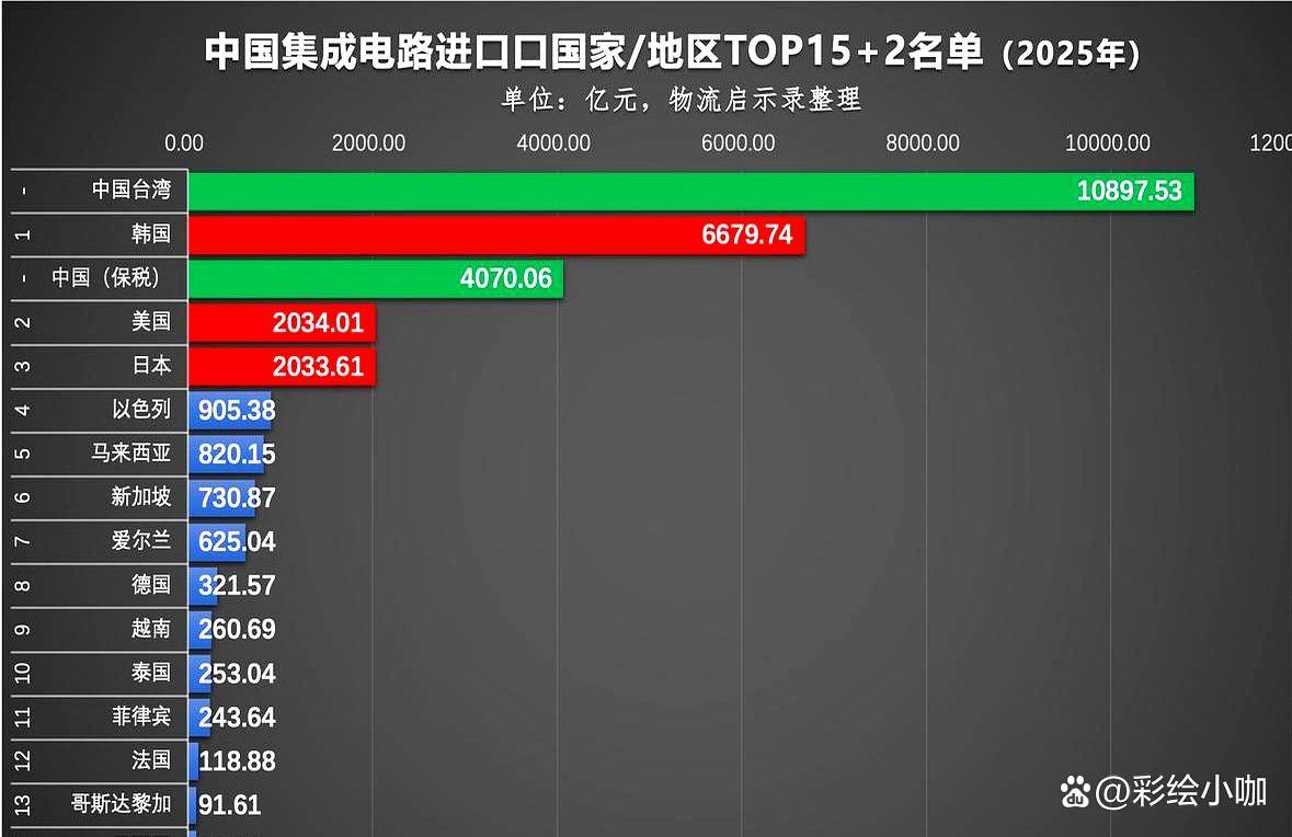 当然,我们最大的“供货商”,其实不在大洋彼岸,就在我们家门口。你没猜错,就是中国台湾和韩国。这两家加起来,几乎占了我们芯片进口的六成。