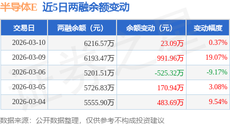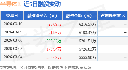 证券之星消息,3月10日,半导体E(159558)融资买入1320.82万元,融资偿还1297.73万元,融资净买入23.09万元,融资余额6216.57万元。