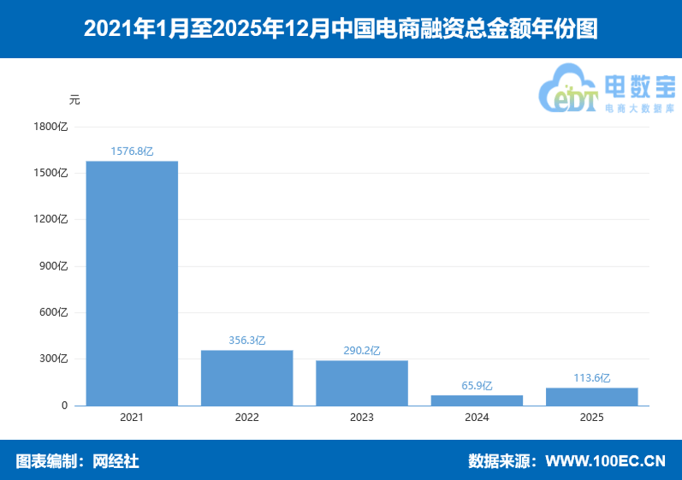 在此背景下,3月18日,我国“一带一路”TOP10影响力社会智库——网经社电子商务研究中心发布了《2025年度中国电子商务投融资数据报告》,也是本系列报道连续第七年发布。本报告根据“电数宝”电商大数据库编制而成。
