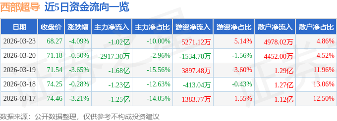 3月23日的资金流向数据方面,主力资金净流出1.02亿元,占总成交额10.0%,游资资金净流入5271.12万元,占总成交额5.14%,散户资金净流入4978.02万元,占总成交额4.86%。