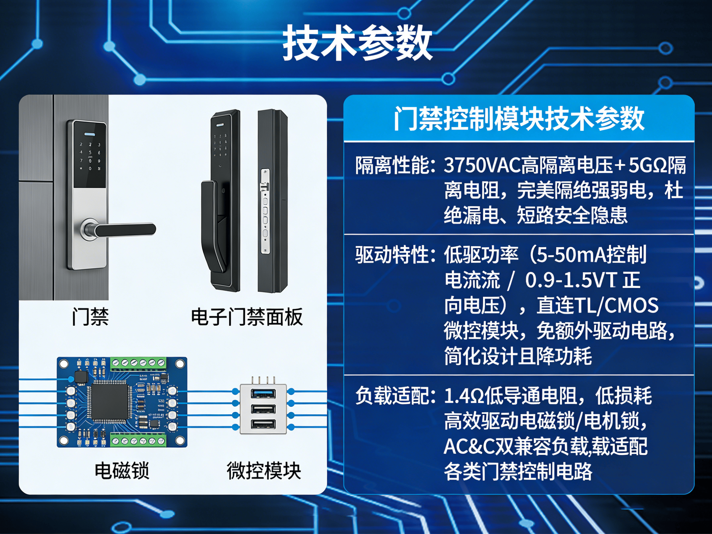 核心性能拉满,从根源解决门禁控制痛点。无 EMI/RFI 电磁干扰,无需额外滤波电路,保障门禁音视频、控制信号传输零卡顿、零失真;摒弃机械运动部件,杜绝触点磨损、烧蚀问题,理论超长寿命适配门禁高频次通断,大幅降低设备后期维护成本;通断零电弧无火花,无需缓冲电路,精简硬件设计的同时节省电路板空间