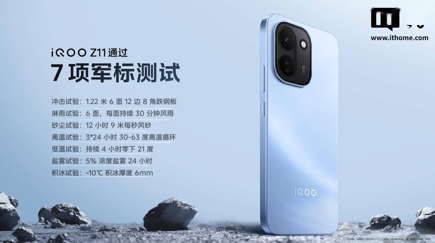 iQOO Z11 还支持 IP68&IP69 满级防尘防水,通过 7 项国家军用标准测试,同时还拥有职业模式、全功能 NFC、红外遥控等日常功能。
