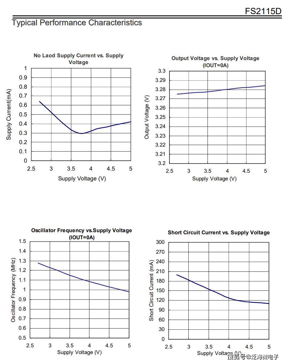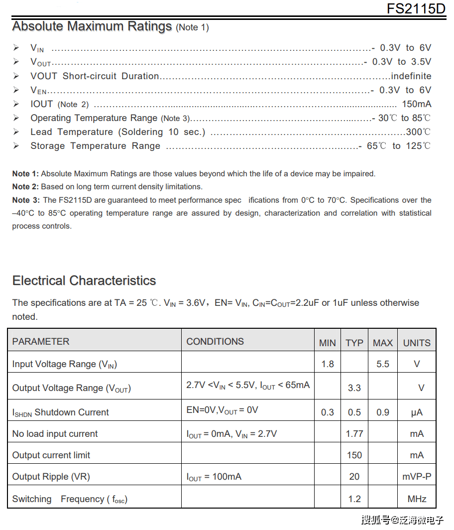 新的电荷泵架构将恒定的开关频率维持在零负载,并降低输出和输入纹波。FS2115D 具有热关断功能,可以承受从 VOUT 到 GND 的连续短路。 内置软启动电路可防止启动期间浪涌电流过大。