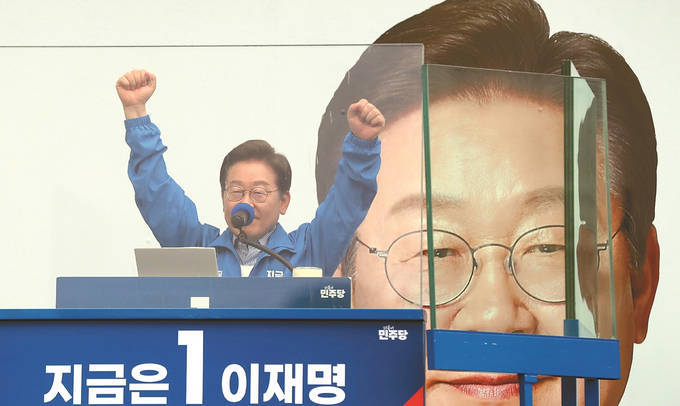 6月2日,李在明在首尔参加竞选活动。(新华社发)