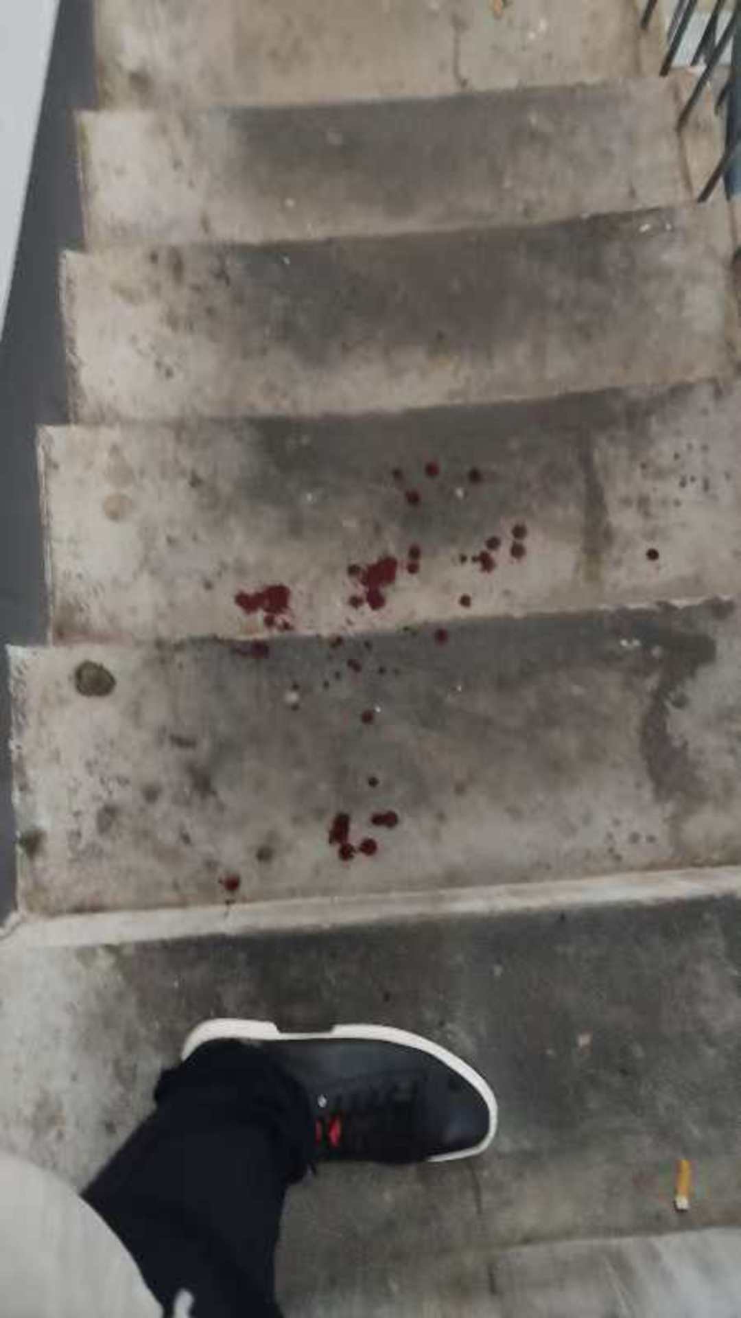 现场楼道的血迹(受访者供图)