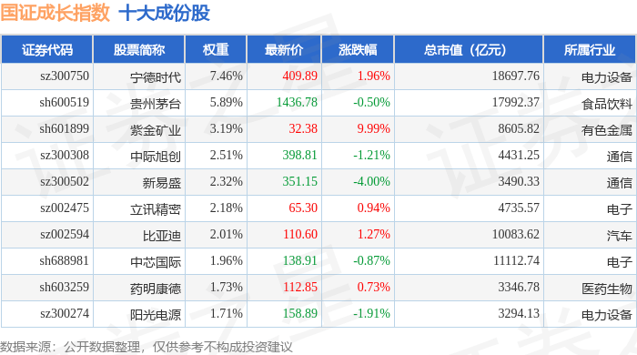 证券之星消息,10月9日,国证成长(399370)指数报收于5177.42点,涨1.75%,成交6706.62亿元,换手率2.16%。当日该指数成份股中,上涨的有228家,西部超导以20.0%的涨幅领涨,下跌的有103家,中国电影以9.97%的跌幅领跌。