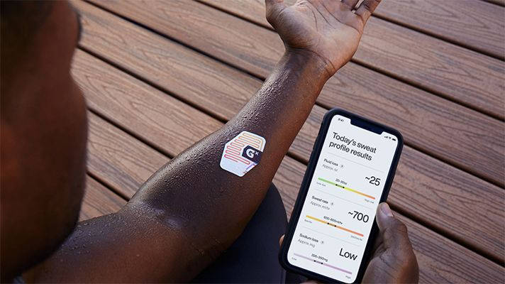Epicore Biosystems 的起点颇具戏剧性。Rogers 团队最初研究汗液,是希望找到一种非侵入性的方式来获取血液中的生化信息,并应用于医疗诊断。然而,第一个商业机会却来自运动领域。与佳得乐的合作为公司带来了稳定的收入和规模化的制造能力,他们至今已经生产了约三百万个汗液分析贴片(GxSweatPatch)。这种一次性的贴片成本极低,用户通过手机拍照读取颜色变化,就能得知自己的汗液流失量和电解质损失情况,并获得个性化的补水建议。