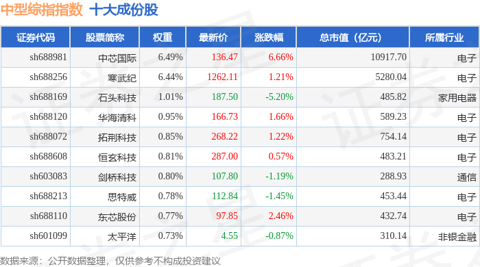 证券之星消息,10月13日,中型综指(000020)指数报收于1693.24点,涨0.52%,成交2490.08亿元,换手率2.78%。当日该指数成份股中,上涨的有331家,路维光电以20.0%的涨幅领涨,下跌的有575家,上纬新材以20.0%的跌幅领跌。