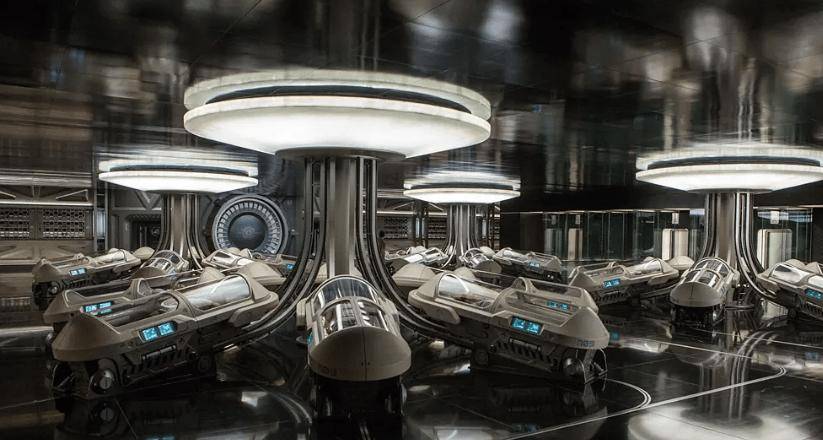 《太空旅客》剧照。在这部影片里,有5000名乘客借助人工冬眠技术,历经120年的太空航行中顺利抵达外太空,并且成功苏醒。丨豆瓣
